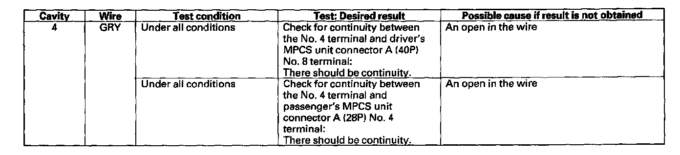 7. If all the input tests are OK and multiple failures are found, replace the moonroof motor assembly. If the problem is related to the key-off operation, go to the driver's MPCS unit input test, Driver's MPCS Unit Input Test and passenger's MPCS unit input test.