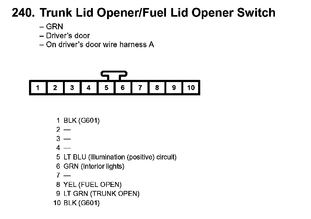 240. Trunk Lid Opener/Fuel Lid Opener Switch: