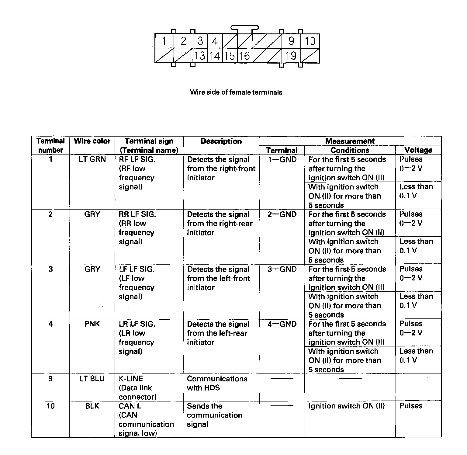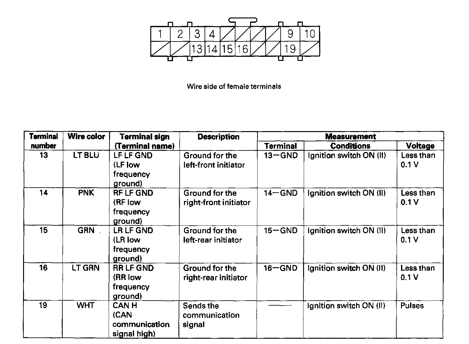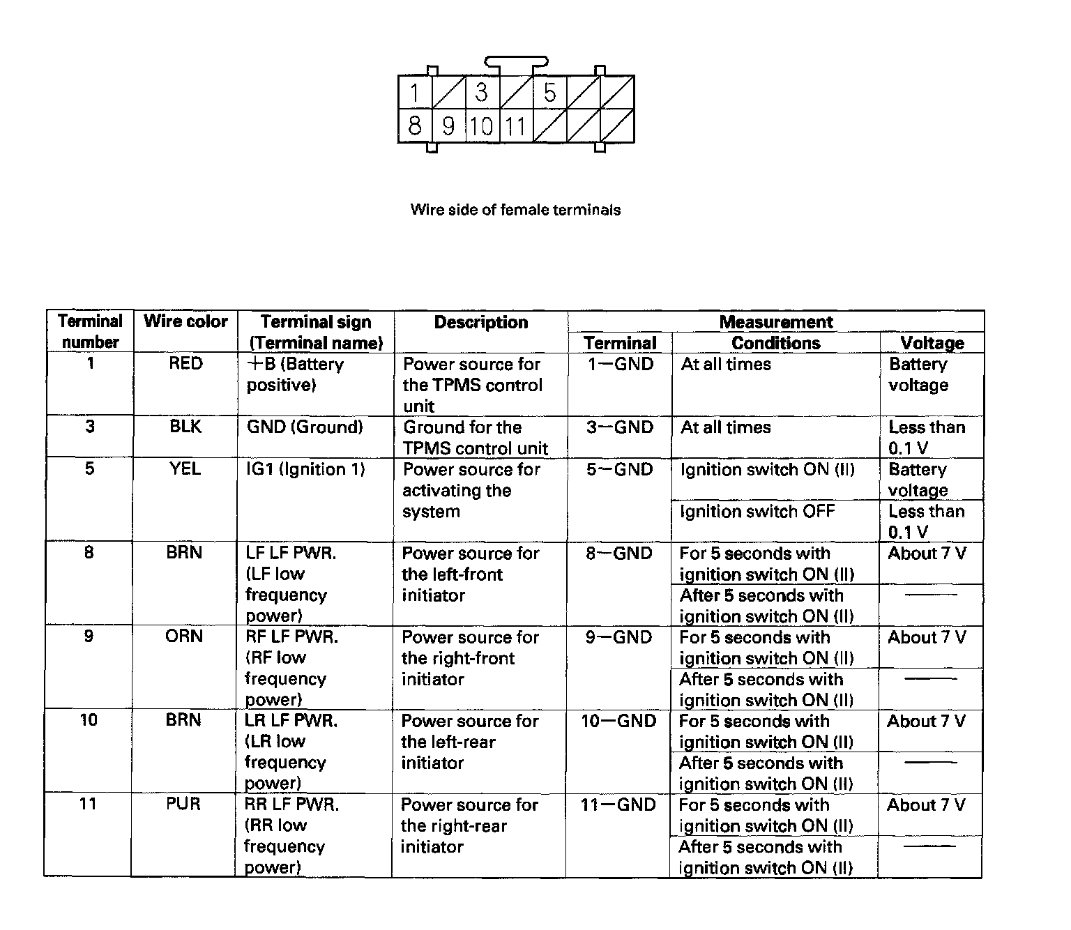 TPMS Control Unit Inputs and Outputs for Connector A (14P):