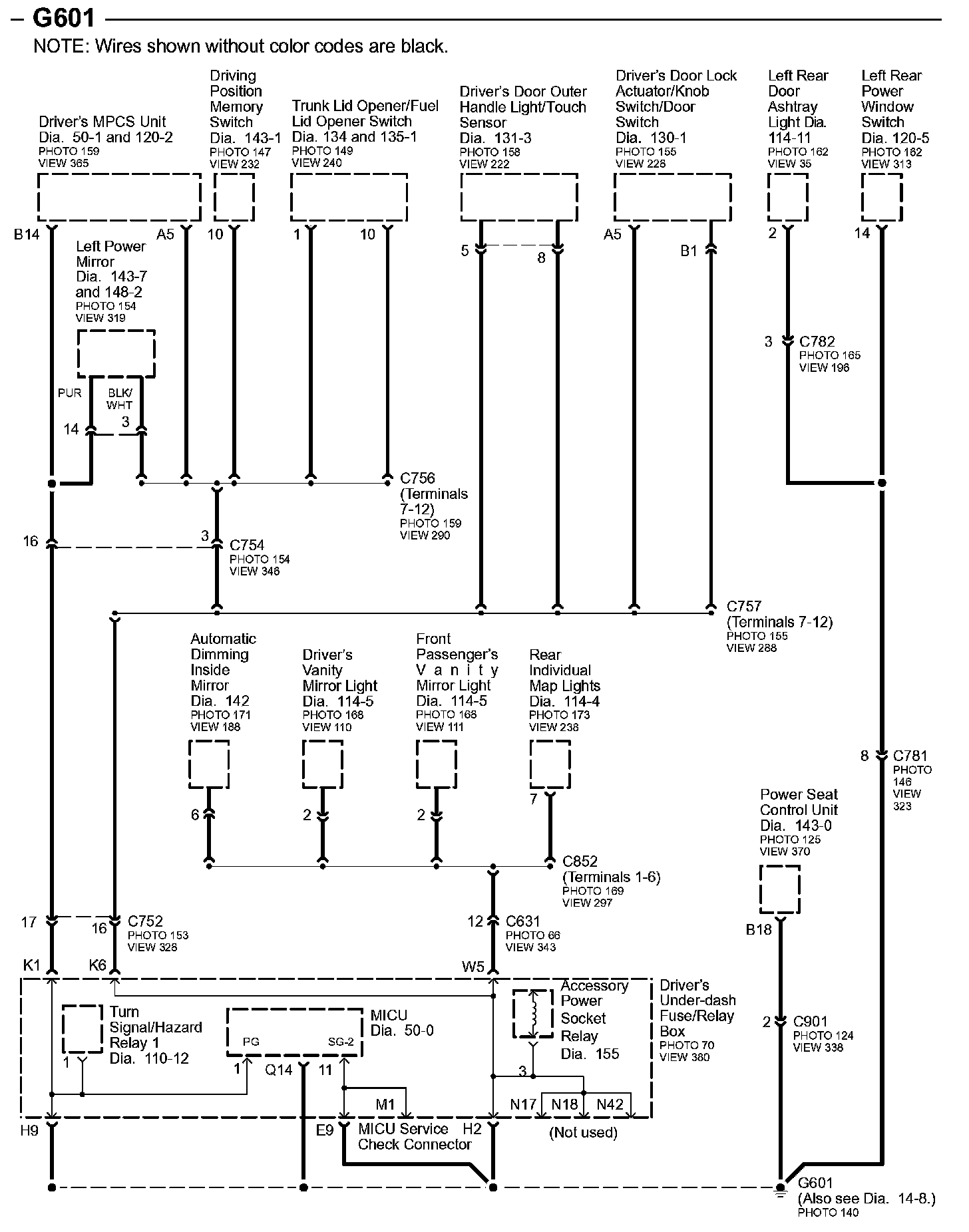 Connector Views: Connector terminal views (references to VIEWS) referred to within these diagrams can be found at Connector Views by View Number. Connector Views By View Number
