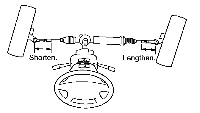 ^ If the wheels are pointed to the left, shorten the passenger's side tie-rod, and lengthen the driver's side.