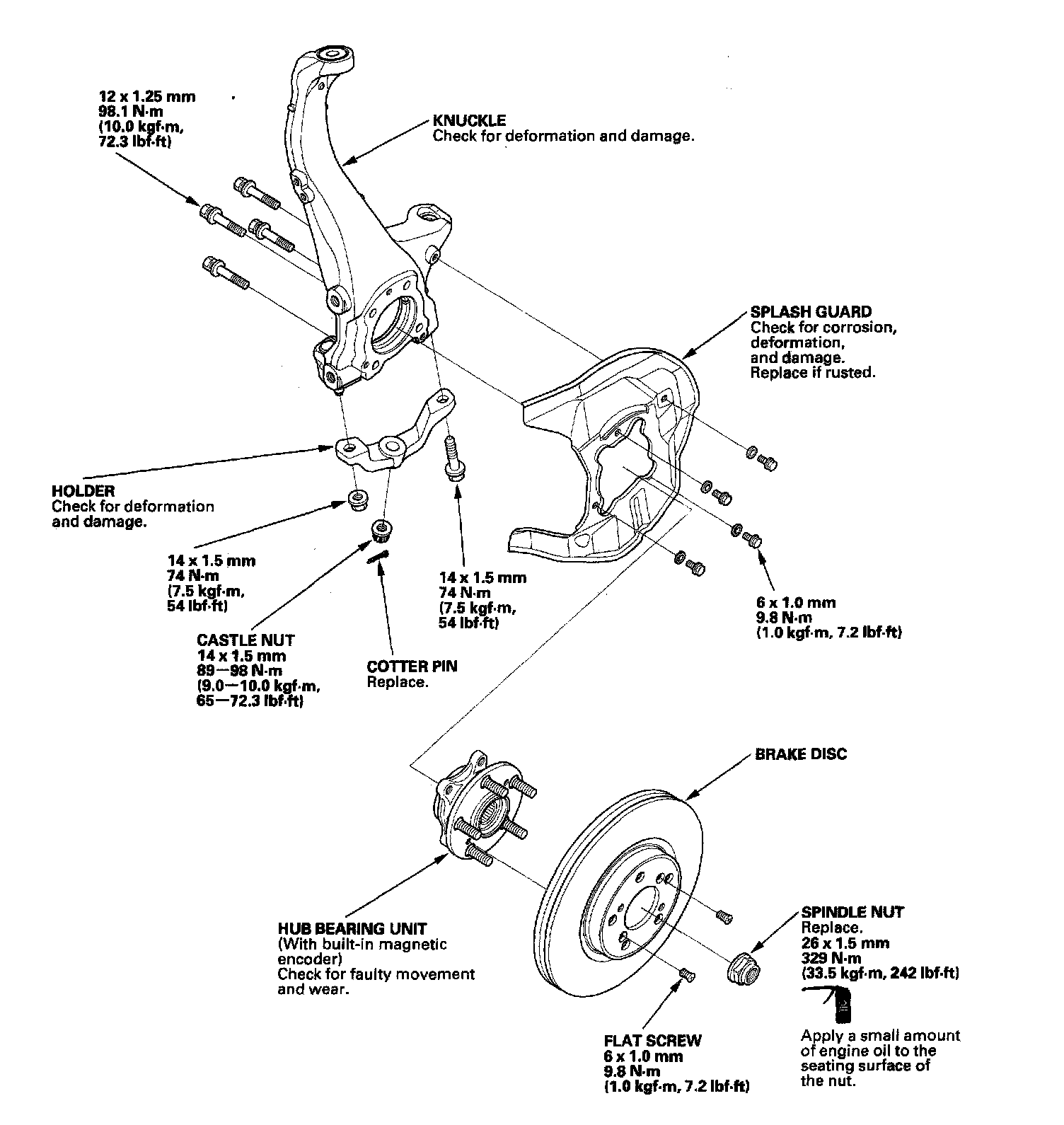12. Install the hub bearing unit in the reverse order of removal, and note these items: