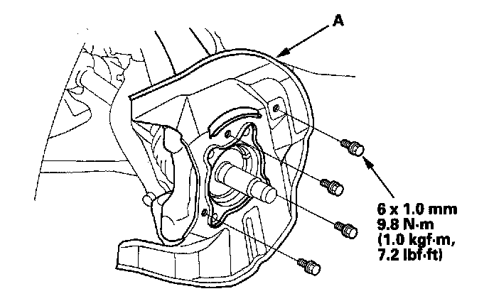 10. Remove the hub bearing unit mounting bolts (A).