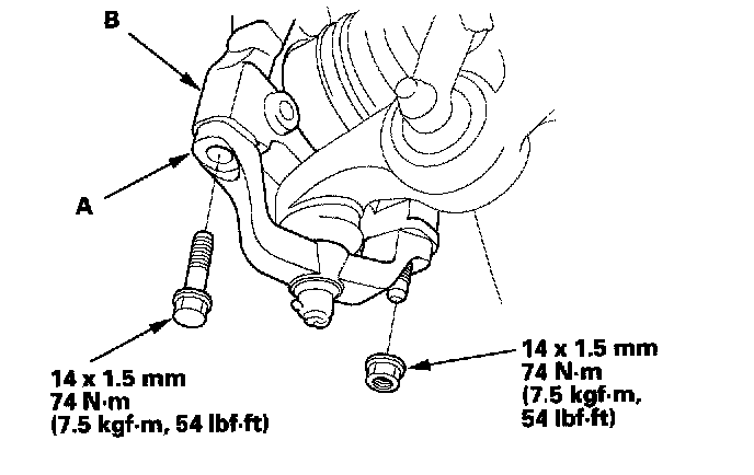 ^ First install all the components and lightly tighten the bolts and nuts, then raise the suspension to load it with the vehicle's weight before fully tightening to the specified torque values.
