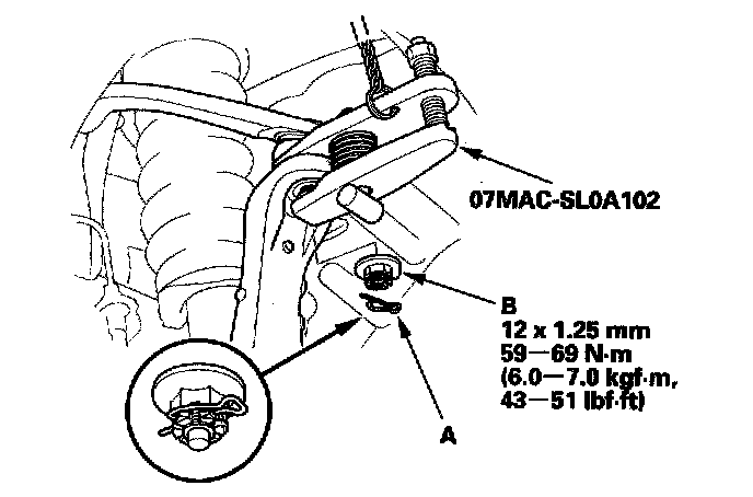 6. Remove the holder (A) from the knuckle (B).