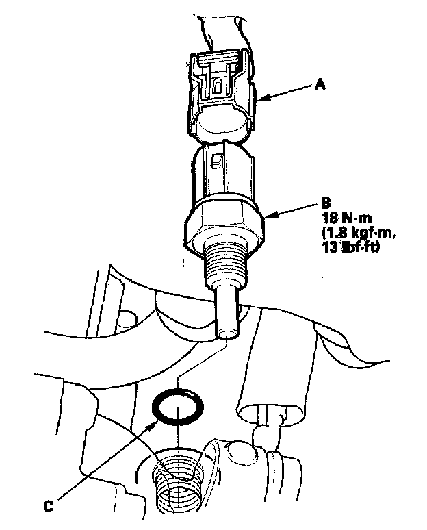 4. Install the sensor in the reverse order of removal with a new O-ring (C), then refill the radiator with engine coolant.