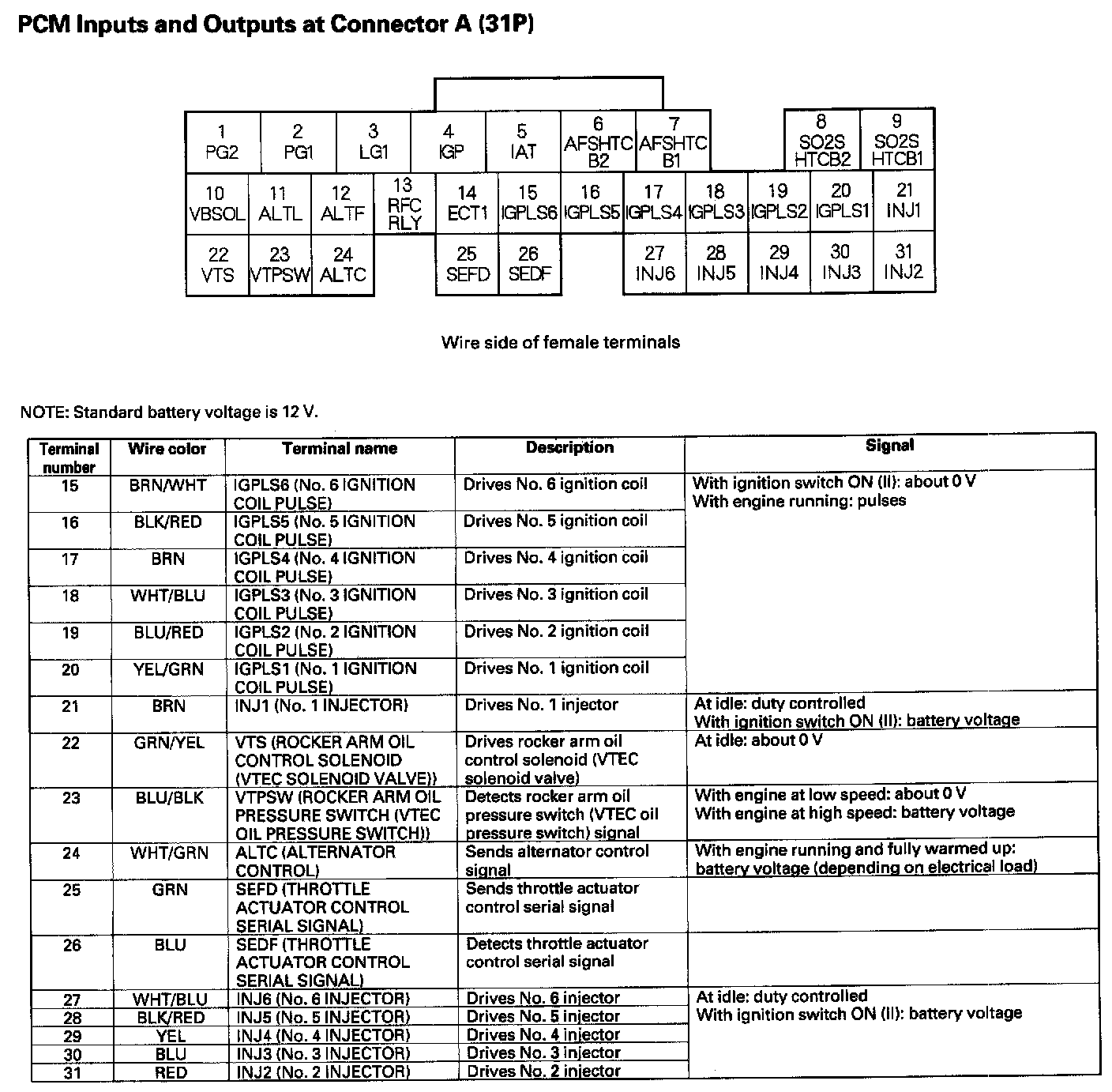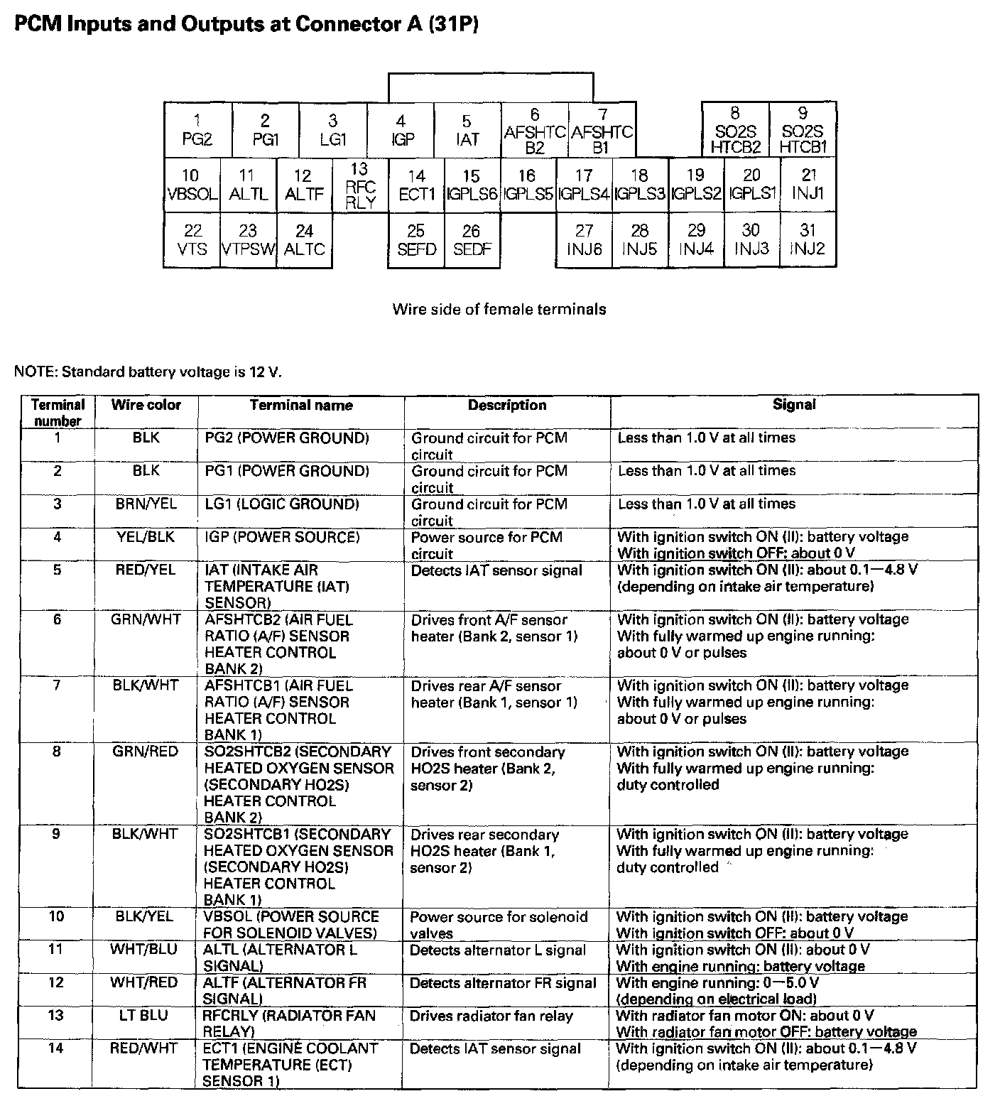PCM Inputs And Outputs At Connector A (31P) Part 1: