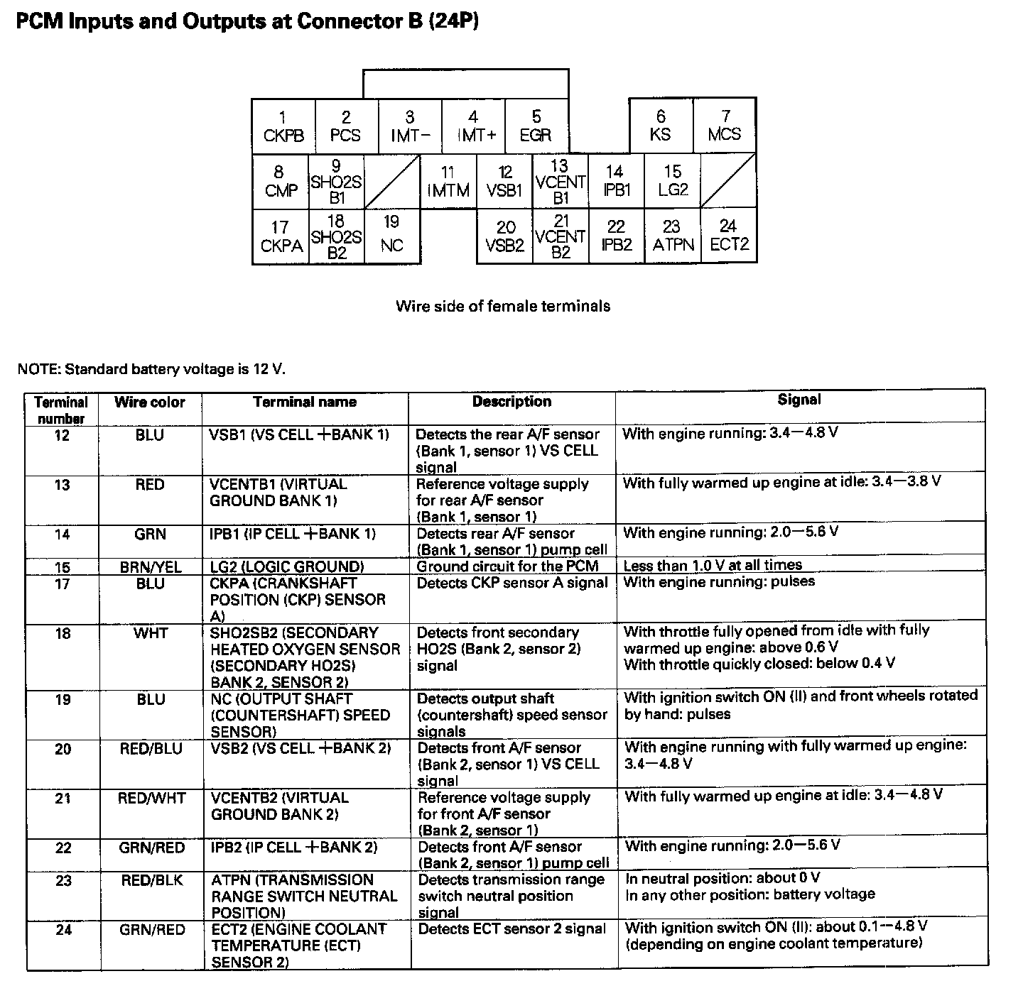 PCM Inputs And Outputs At Connector B (24P) Part 1: