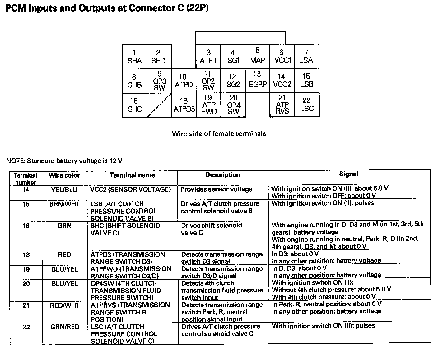 PCM Inputs And Outputs At Connector C (22P) Part 2: