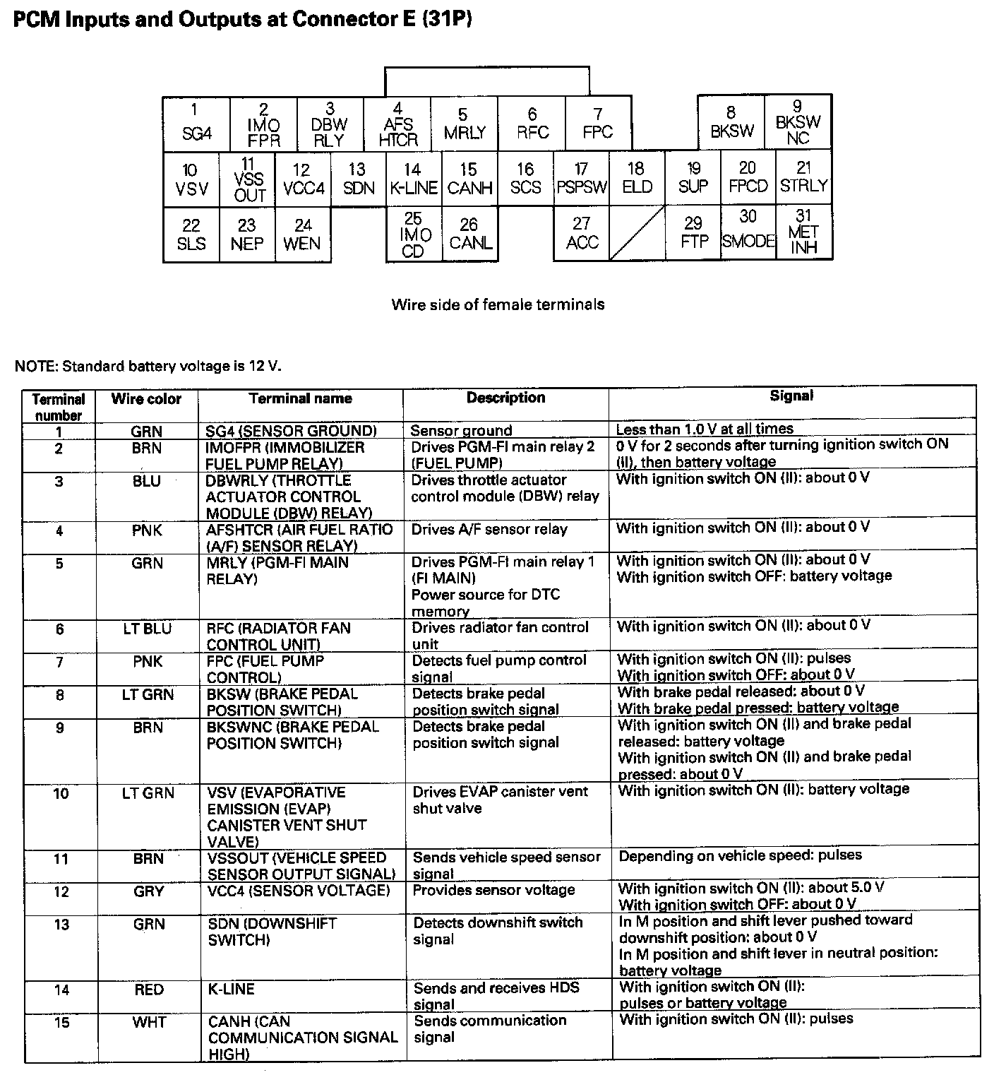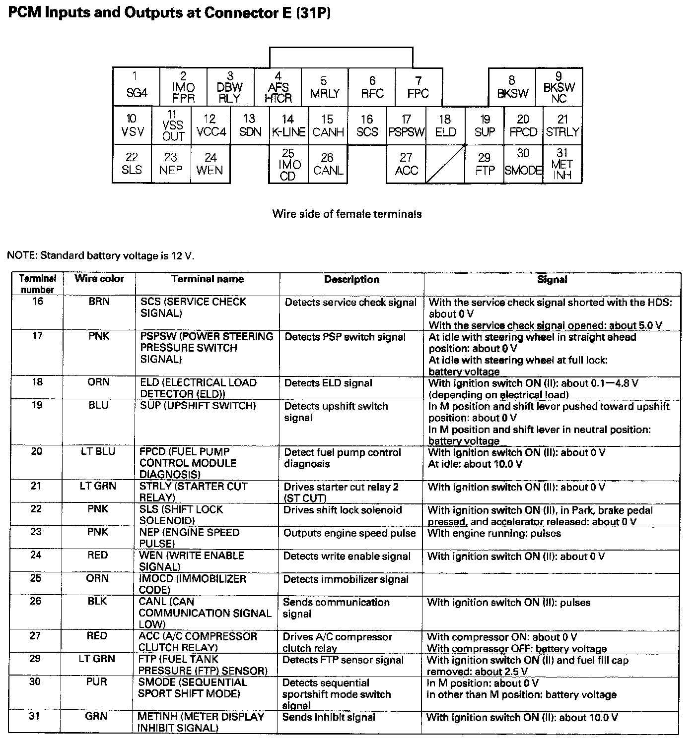 PCM Inputs And Outputs At Connector E (31P) Part 1: