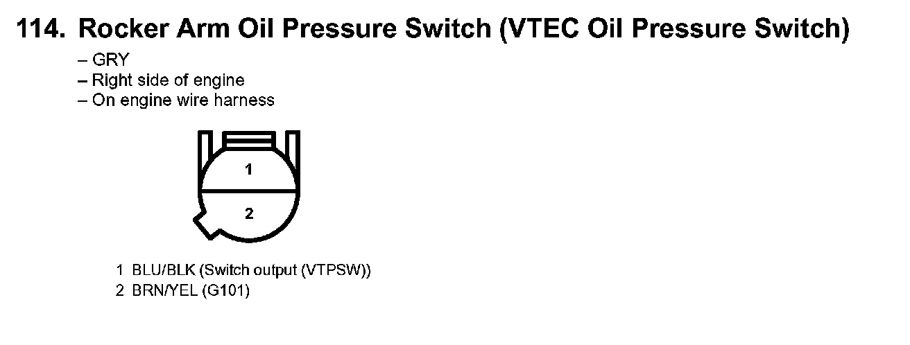 114. Rocker Arm Oil Pressure Switch (VTEC Oil Pressure Switch):