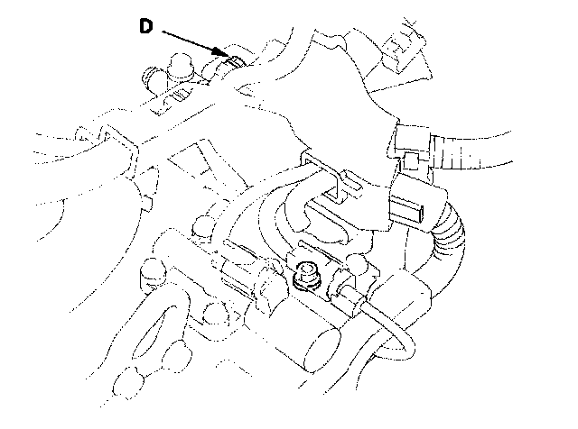 13. Remove the air intake duct and air cleaner housing, and connect the oil pressure gauge to the 2nd clutch pressure inspection port (D). Then temporarily install the air cleaner housing and air intake duct.