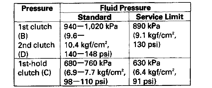 - A/T clutch pressure gauge set 07406-0020400 or 07406-0020401