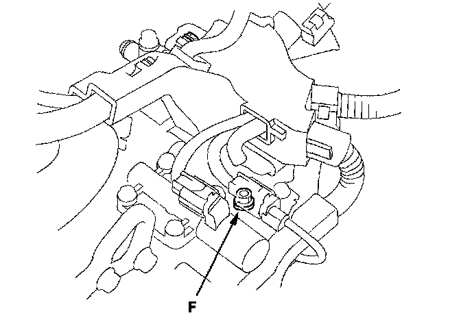 26. Shift to 4th gear, and measure the 4th clutch pressure at the 4th clutch pressure inspection port (F) while holding the engine speed at 2,000 rpm.