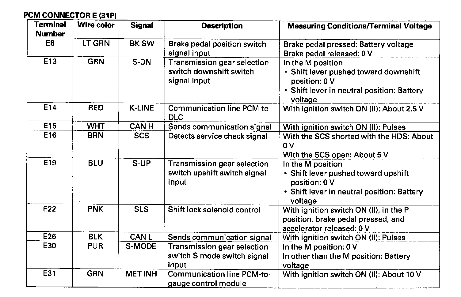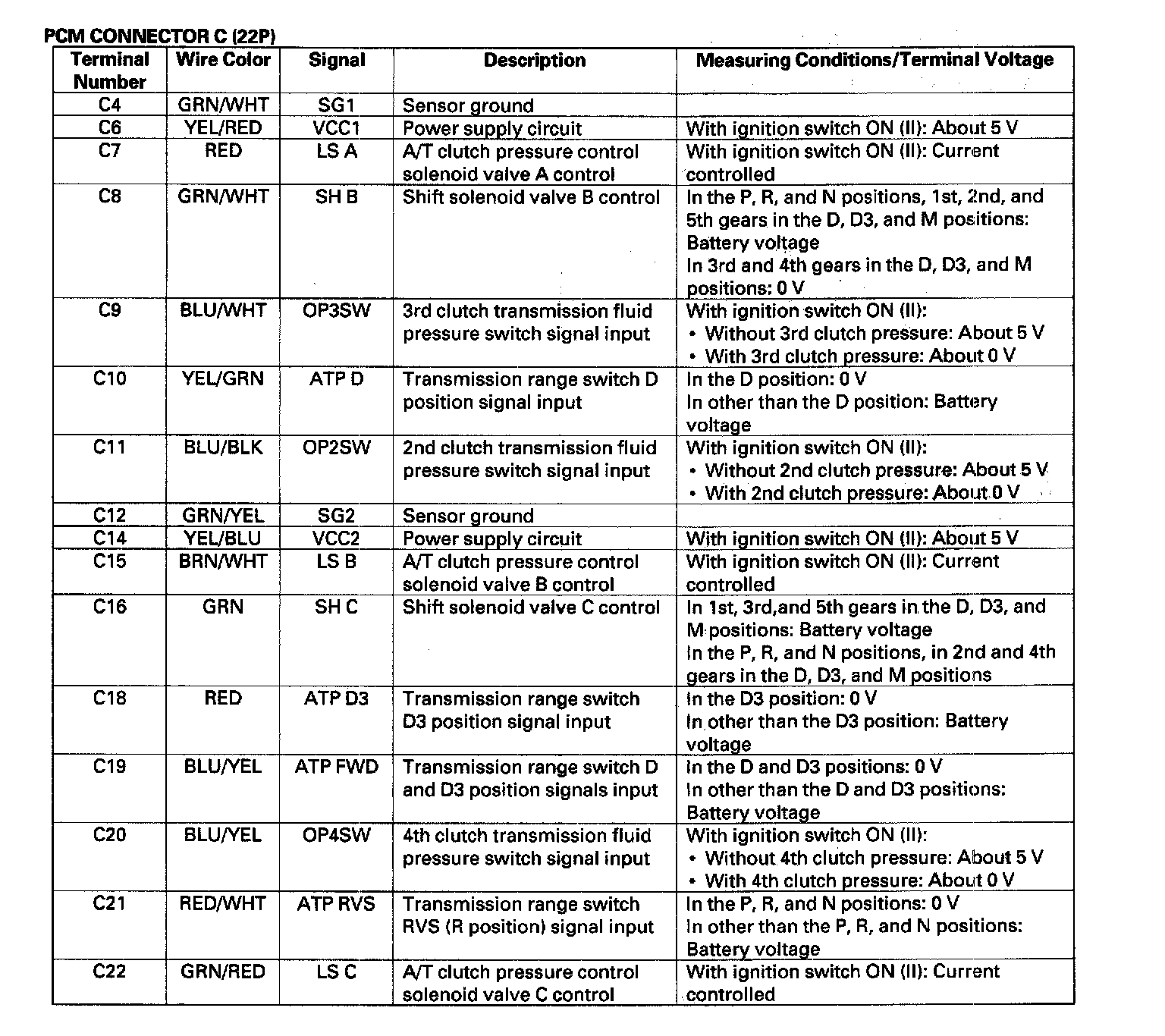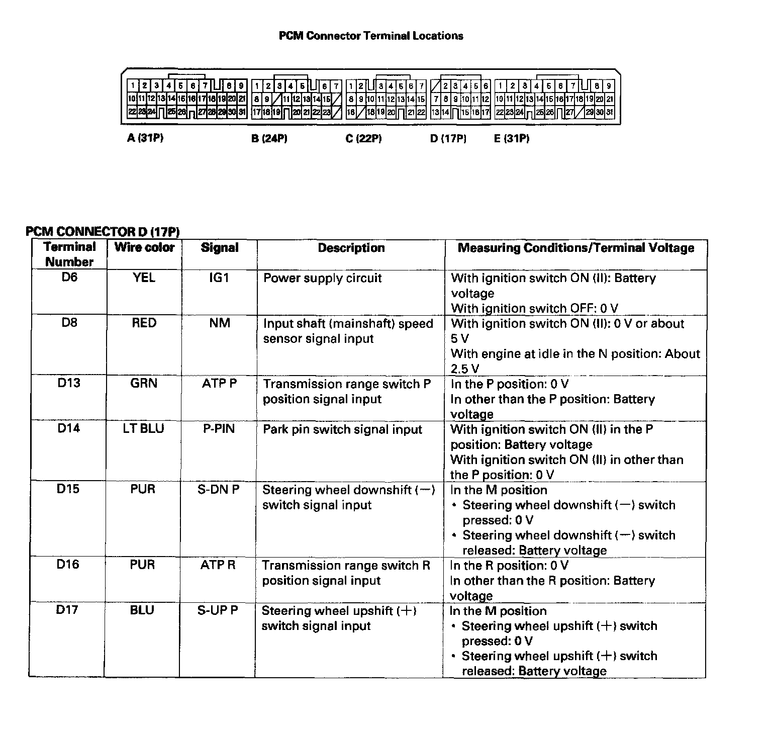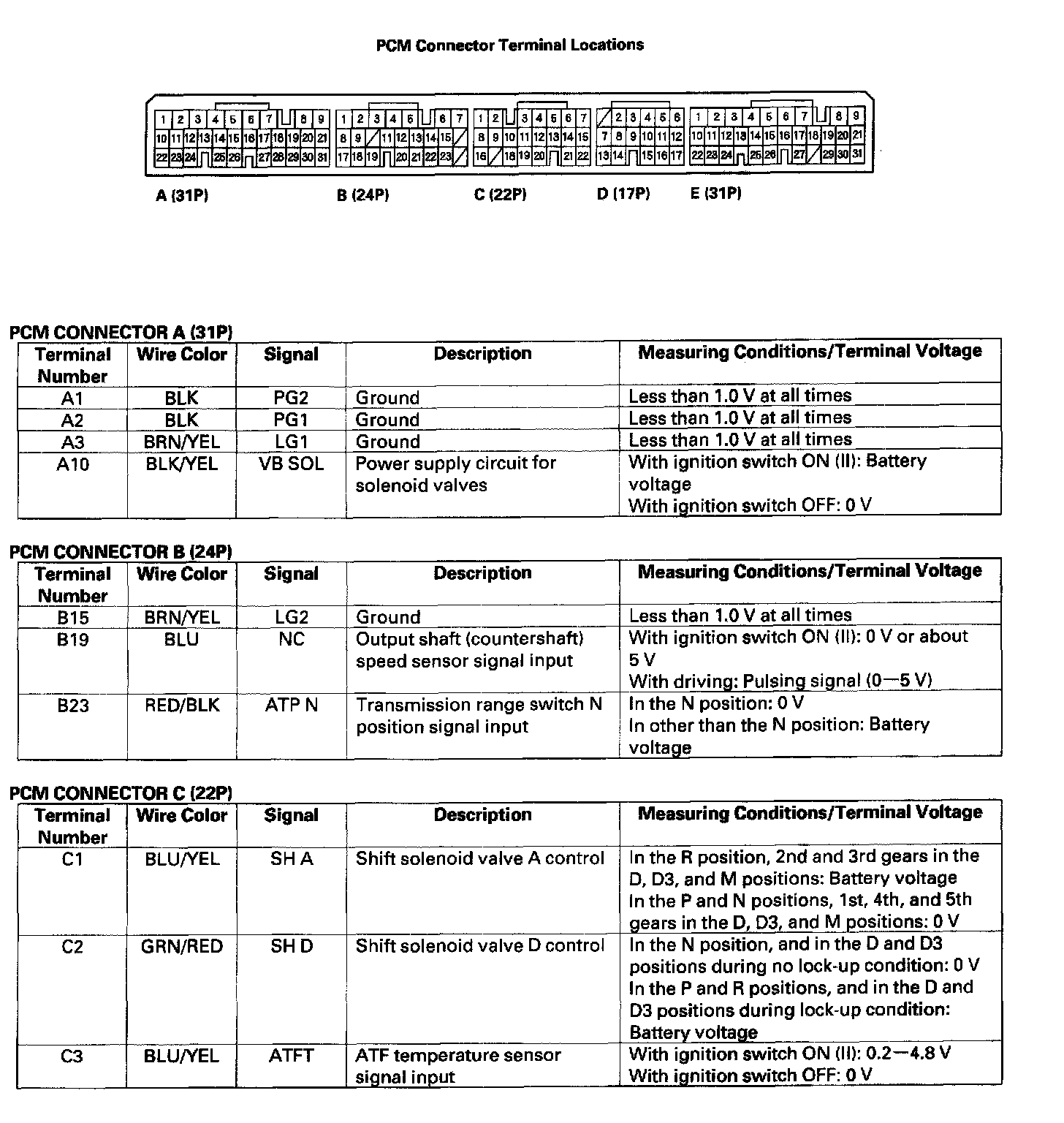 PCM A/T Control System Inputs and Outputs: