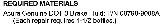 A cup seal in the master cylinder is sensitive to the type of brake fluid used in the brake system. If the brake fluid is replaced with anything other than Acura (or Honda) Genuine DOT 3 Brake Fluid, and the brakes are manually bled, the cup seal may twist in its retention groove and create a small leak. The brake fluid can then leak into the brake booster, and the brake system indicator will eventually come on because the brake fluid level is low.