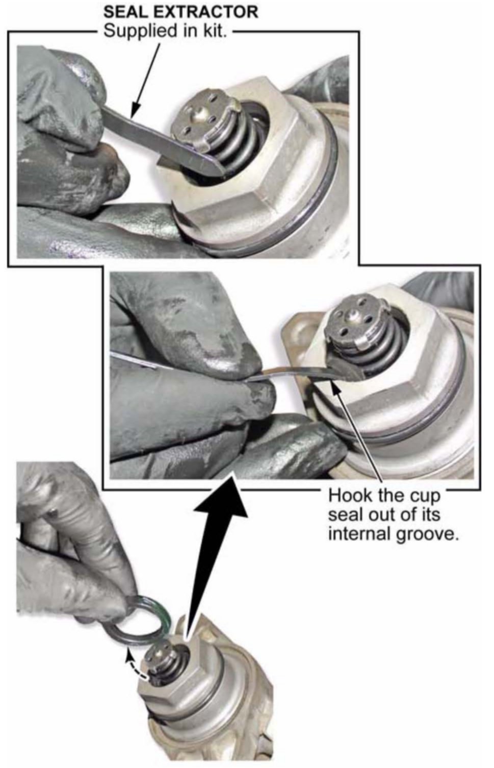 10. Remove the cup seal from the end of the master cylinder using the seal extractor (wire tie).