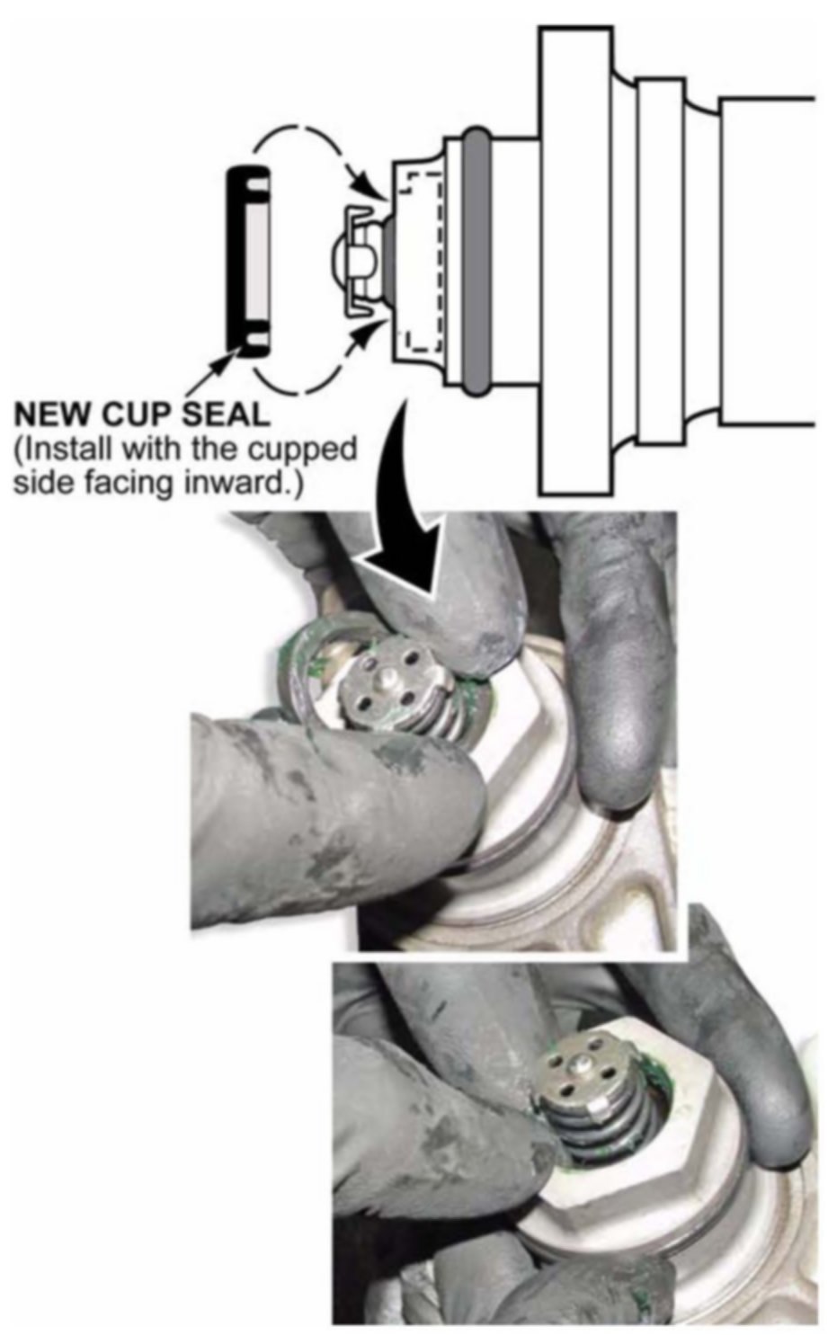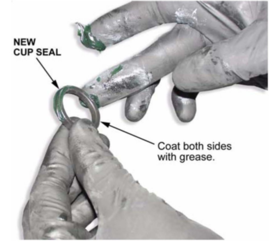 12. Install the new cup seal, by hand, into the seal groove at the end of the master cylinder. Install the seal with its cupped side facing the master cylinder.