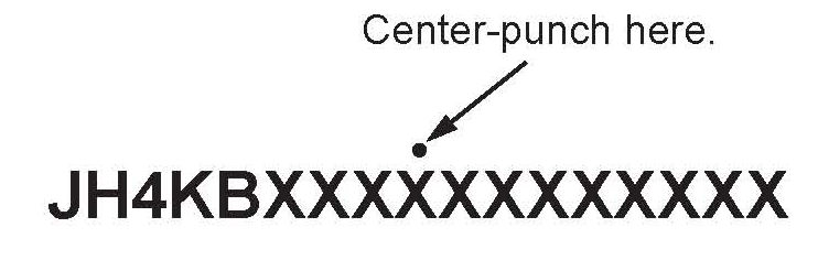 17. Center-punch a completion mark above the ninth character of the engine compartment VIN: