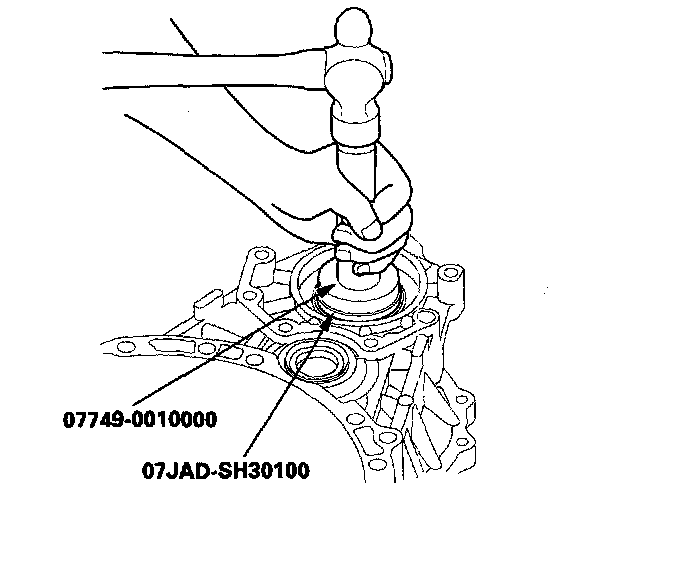 2. Install the new oil seal flush to the torque converter housing with the special tools.