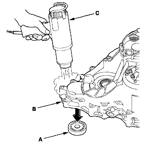 2. Install the new gasket (C) on the torque converter housing.
