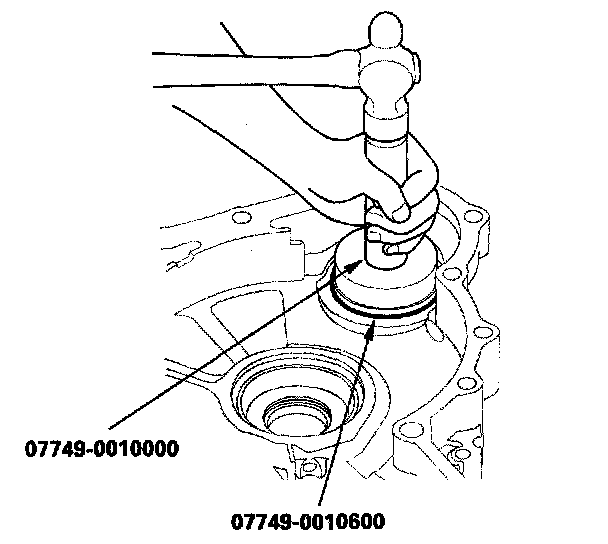 3. Drive the new bearing until it bottoms in the housing with the special tools.