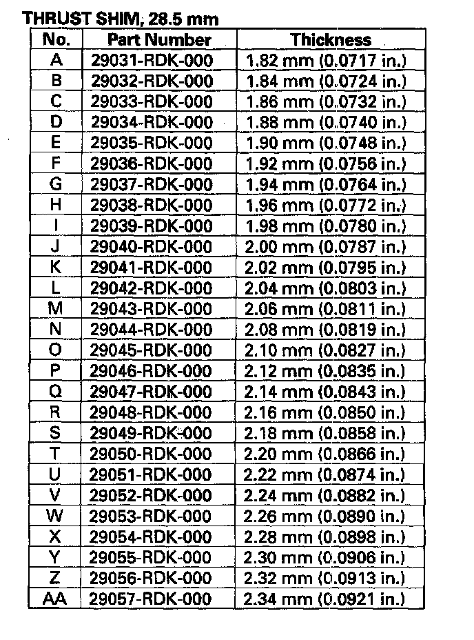 4. If the measurement is out of standard, remove the 28.5 mm thrust shim and measure its thickness.