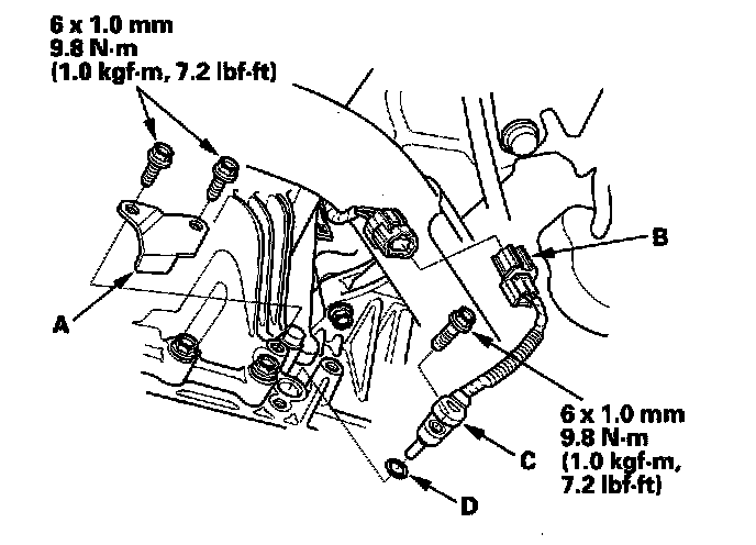 4. Install the differential fluid temperature sensor with a new O-ring (D) in the reverse order of removal.