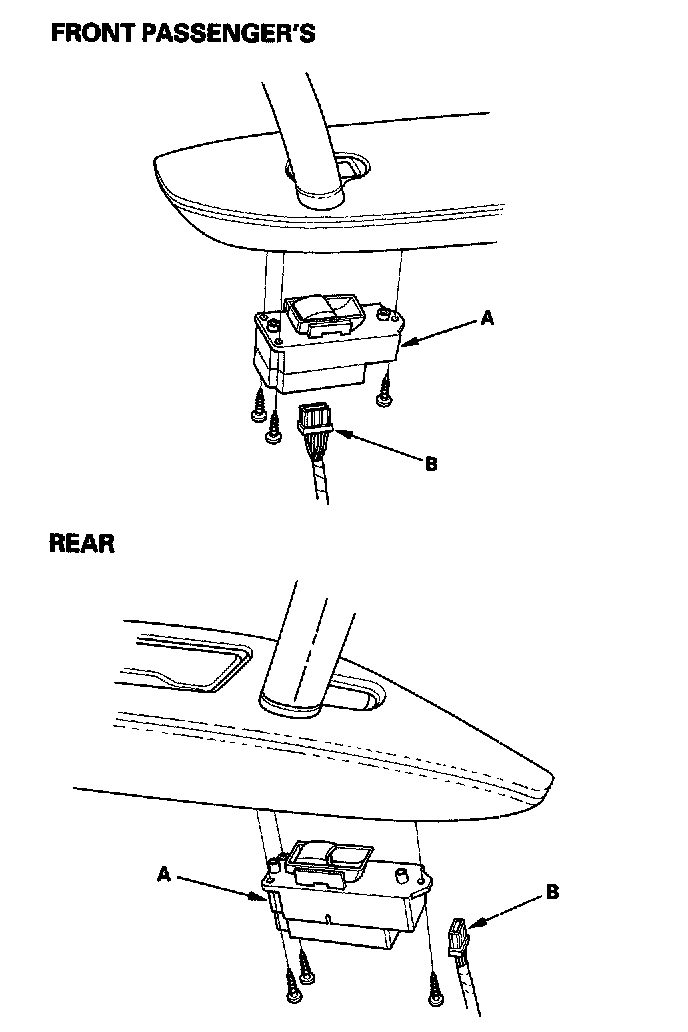 2. Disconnect the 10P (or 14P)* connector (A) from the passenger's window switch (B).