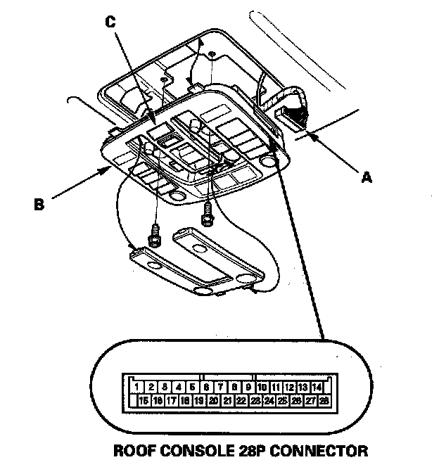 2. Disconnect the 20P connector (A) from the roof console (B).