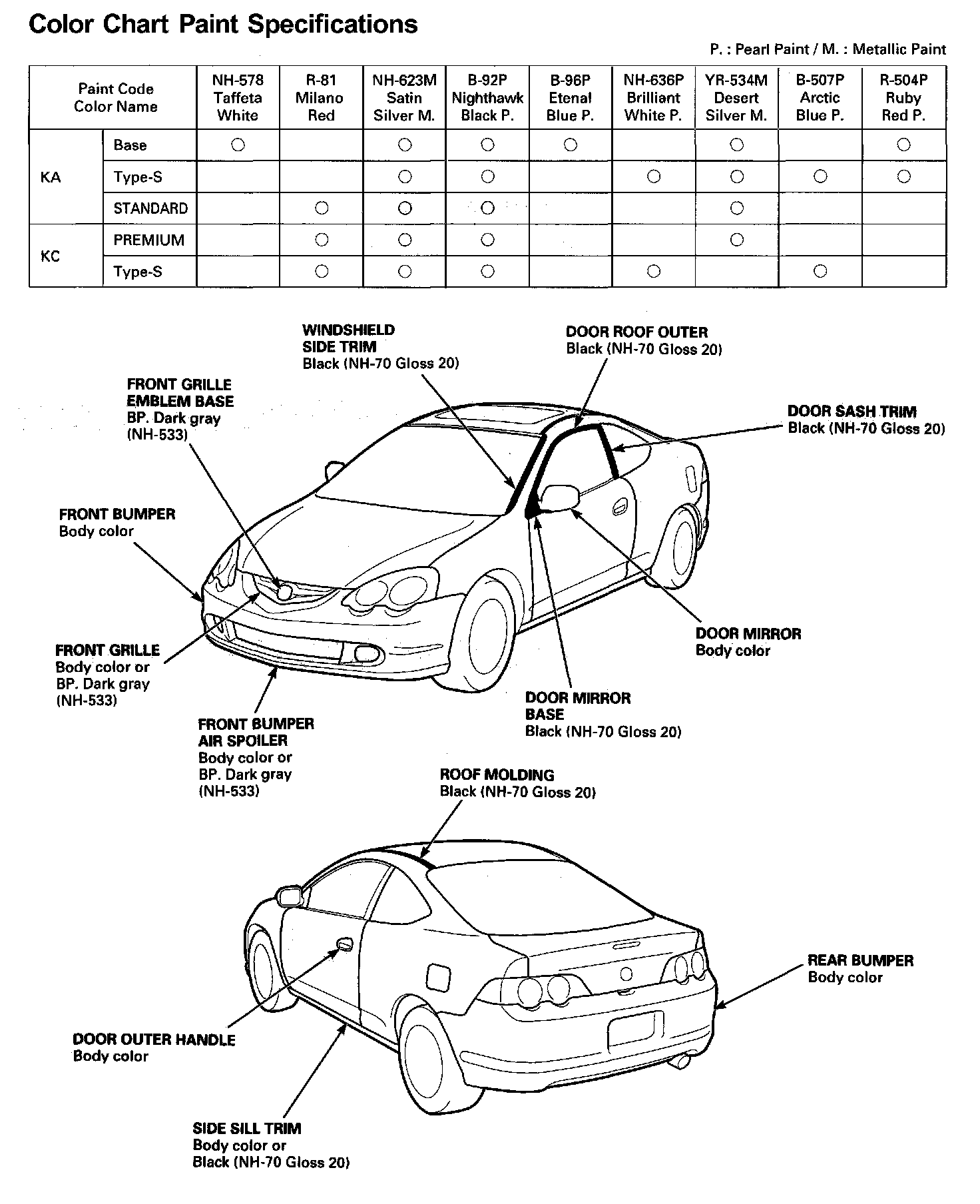 Color Chart Paint Specifications