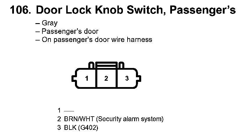 106. Door Lock Knob Switch, Passenger's: