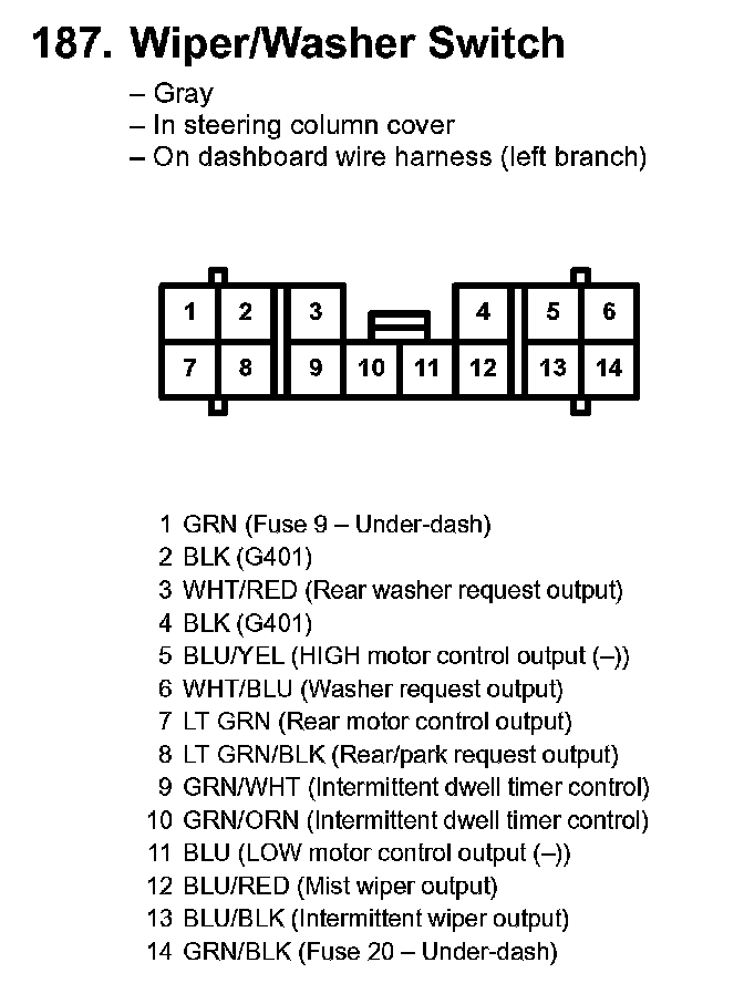 187. Wiper/washer Switch: