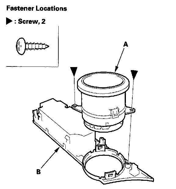 3. If necessary, remove the screws securing the driver's center vent (A), then separate it from the heater control panel (B).