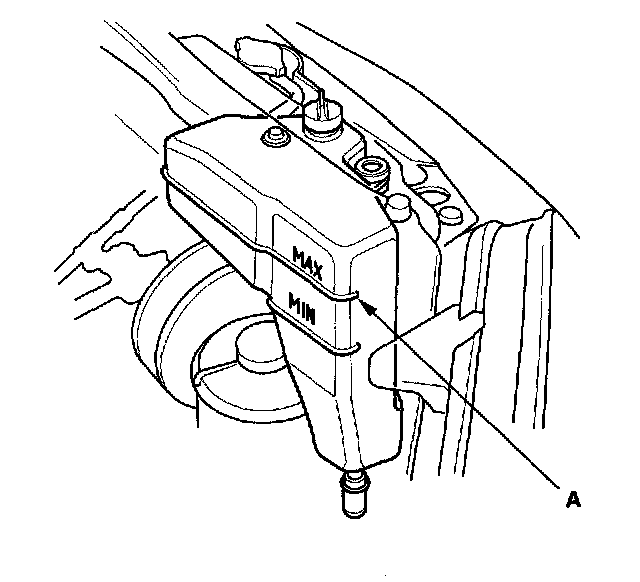 7. Fill the reserve tank to the MAX mark (A) with Honda All Season Antifreeze/Coolant Type 2 (P/N OL999-9001).