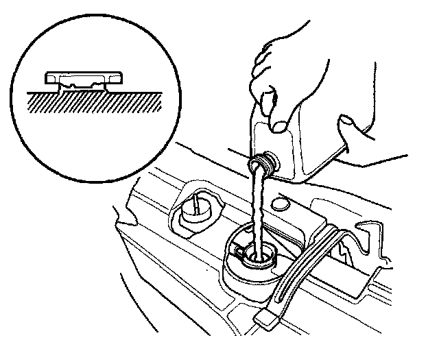 8. Pour Honda All Season Antifreeze/Coolant Type 2 into the radiator up to the base of the filler neck.