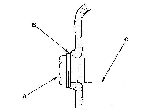 2. Remove the oil filler plug (A) and washer (B), check the condition of the fluid, and make sure it is at the proper level (C).