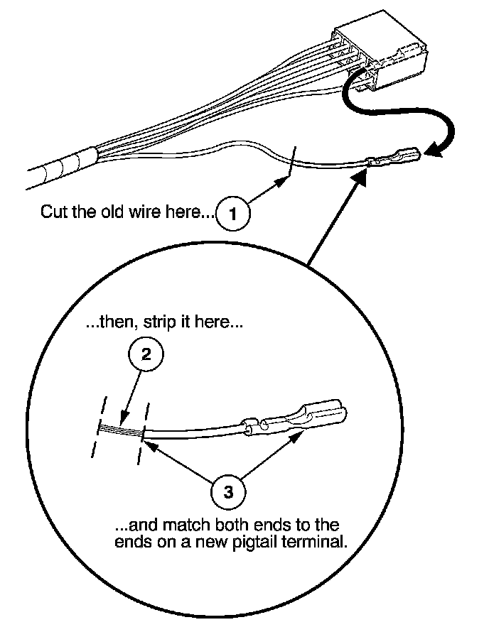 3. Select a pigtail terminal that matches the original wire at both ends (same kind of terminal and same diameter bare wire).