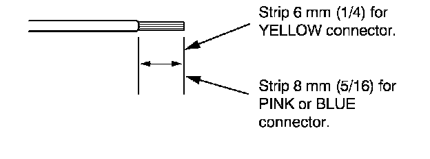 7. If you are using a yellow splice connector, strip about 6 mm (1/4 inch) of insulation off the ends of both wires. If you are using a pink or blue splice connector, strip off about 8 mm (5/16 inch) of insulation.