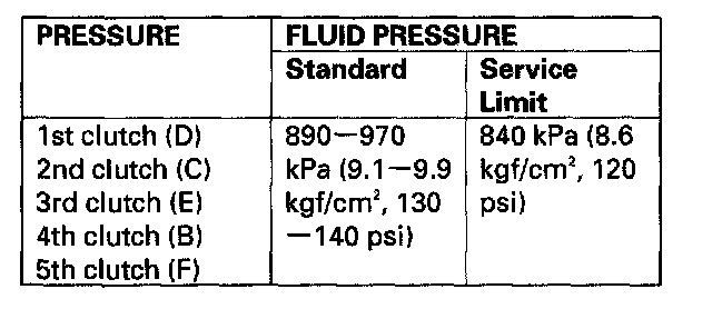 NOTE: Higher pressure may be indicated if measurements are made in shift lever position other than N or P.