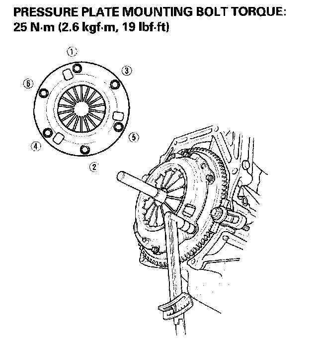 Torque the mounting bolts in a crisscross pattern. Tighten the bolts in several steps to prevent warping the diaphragm spring.