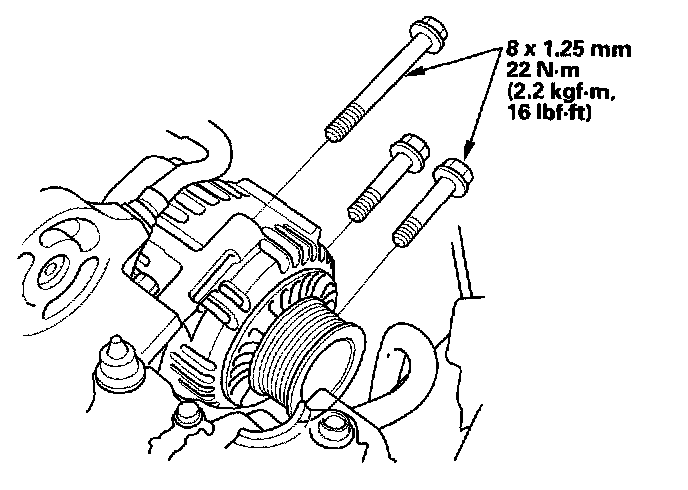 5. Remove the three bolts securing the alternator.