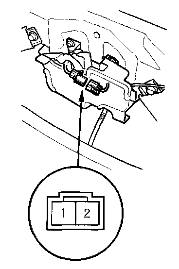 3. Check for continuity between the terminals. There should be continuity between the No. 1 and No. 2 terminals when the hood is opened (latch released). There should be no continuity between the No. 1 and No. 2 terminals when the hood is closed (latch pushed down).
