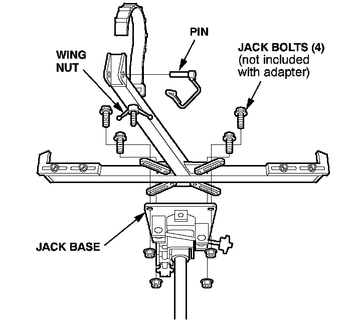 2. Line up the slots in the arms with the bolt holes on the corners of the jack base, then attach the adapter to the jack base with the bolts that came with the jack. Tighten all of the bolts securely.