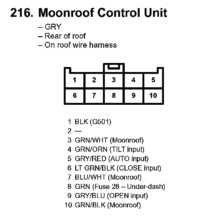 216. Moonroof Control Unit: