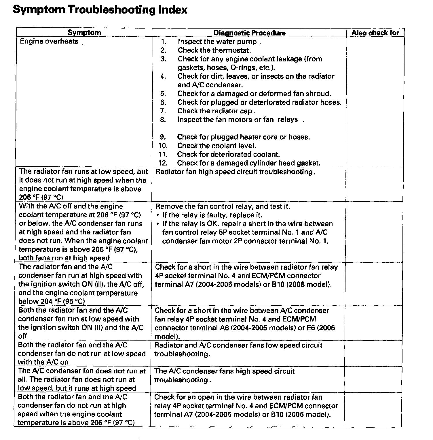 Symptom Troubleshooting Index: