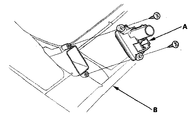 2. Remove the self-tapping screws and the in-car temperature sensor (A) from the driver's dashboard lower cover (B).