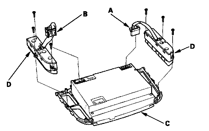 3. Disconnect 10P connector (A) and 16P connector (B) from the display panel control unit (C). Remove the self-tapping screws and the climate control switch assembly (D).
