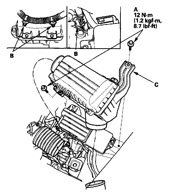 Remove the air cleaner (C).