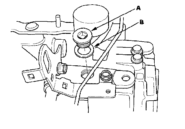 10. Remove the oil filler plug (A) and washer (B).